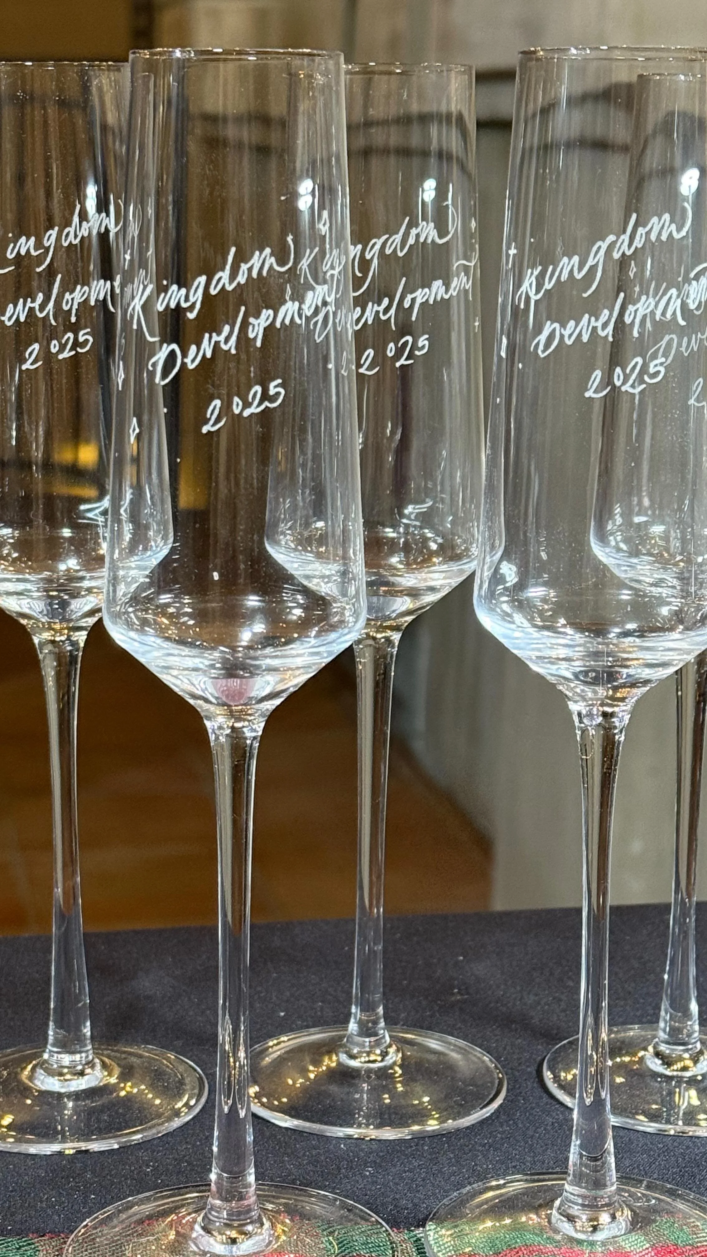 As an event planner in her past life, she knows that nothing makes an event more memorable than a customized experience for your guests. Whether it's personalized glassware, custom wooden items, or delicate note cards, Queenaβs custom calligraphy and engraving services adds a touch of sophistication that sets you and your event apart.